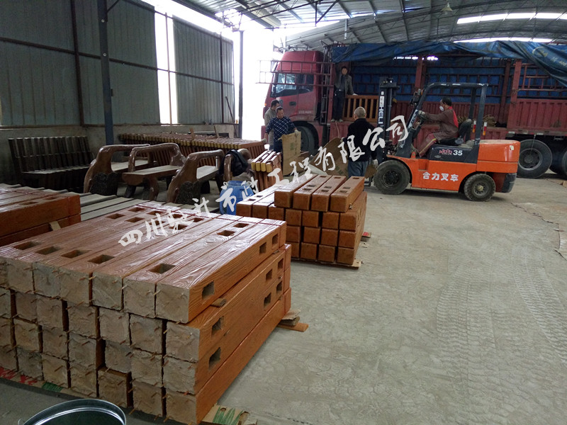 2016年11月初,我司承接的甘肅省隴南市鄉村建設《仿木欄桿》、《仿樹皮垃圾桶》、《生態光皮椅》、《仿樹皮桌凳組合》、《仿半圓樹皮凳子》已安排發貨!